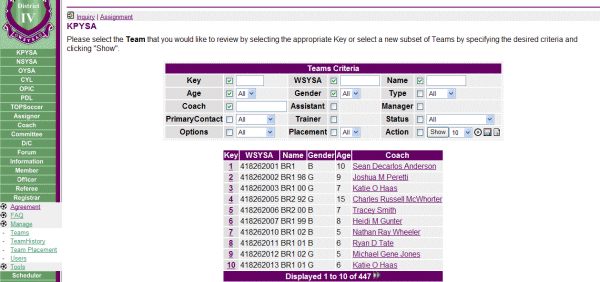 1. You can modify the WSYSA# (Team ID #). This should match the WSYSA TeamID # you have this team identified as in the Bonzi Registration System.