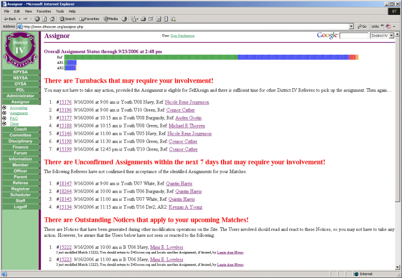 Club Assignors should be checking the status of Assignments for matches involving their home club to ensure the following: