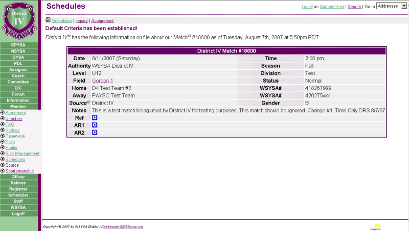 If you have received a Notice and do not understand Why or what is Telling You, simply contact the Webmaster via e-mail (webmaster@d4soccer.org) and reference the Notice # that is at the top of the display when the Notice is Open (see picture below)- Notice #4244