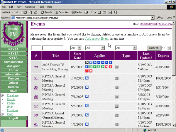 In this case, the Staff Member is dsesignated only as a Staff Member for OYSA. Therefore, this individual can only Create/Edit/Delete or work on items designated for OYSA.